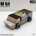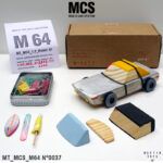 En la parte superior, una tabla de surf sujeta con goma negra remata la personalidad del coche y su aire viajero. Sus proporciones alargadas y las ruedas sobredimensionadas le dan presencia sobre cualquier superficie, ya sea en el suelo del salón o en una estantería.